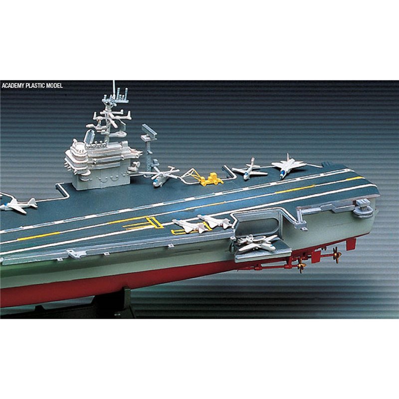 The first Nimitz-class aircraft carrier, the Nimitz CVN-68, was launched in 1975 and led to the production of nine sister vessels. These impressive beauties are 1,000 feet long and displace more than 103,000 tons. The carriers were pivotal in events such as the Libyan raids in the 1980s, the Iraqi invasion of Kuwait, and Operation Enduring Freedom in Afghanistan. This kit with 178 grey plastic parts faithfully recreates the USS Nimitz CVN-68 Aircraft Carrier in 1/800 scale. The fully assembled model is 42.16cm long.