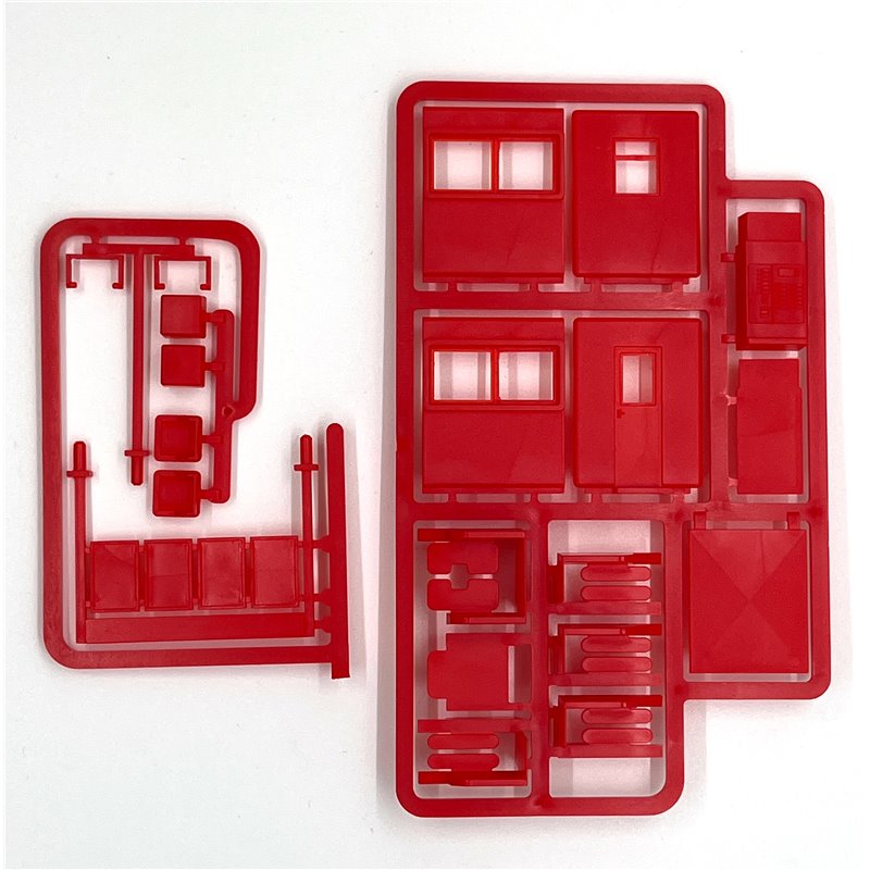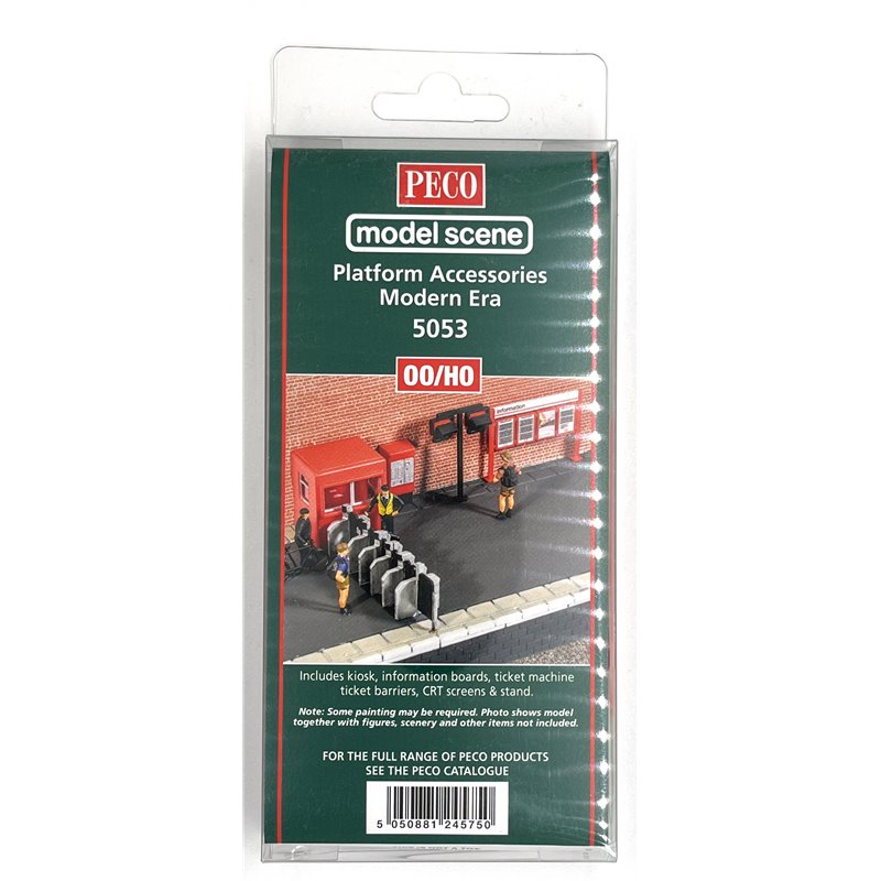 This new kit brings the range of platform accessories into contemporary times. A ticket kiosk, information and timetable boards, a ticket machine, ticket barriers, and CRT screens are all represented in this comprehensive kit. Moulded in red plastic, the models are easy to assemble, and painting would be necessary to bring out the detail. Suitable for all regions in the UK, the models nevertheless recall memories of "Network South East" of the 1980s!