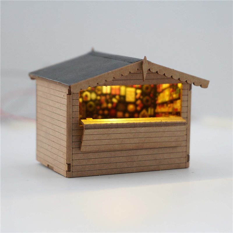 Give your OO gauge model railway layout or 1:76 scale diecast diorama a festive feel with this easy to assemble Christmas Market Stall.