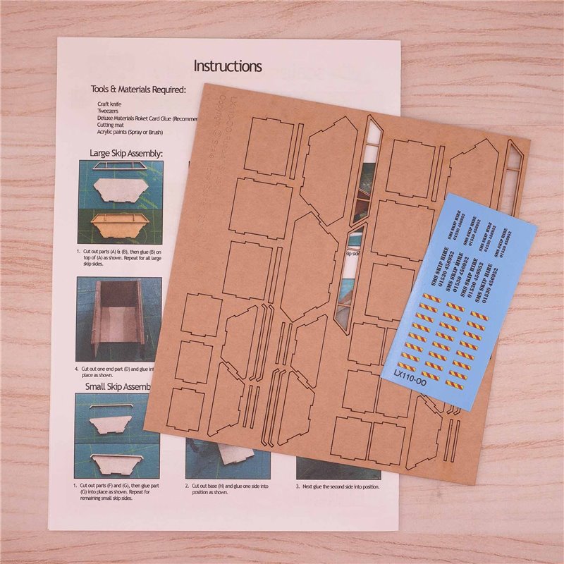 A pack of 5 laser-cut rubbish skips (2 large and 3 small).
