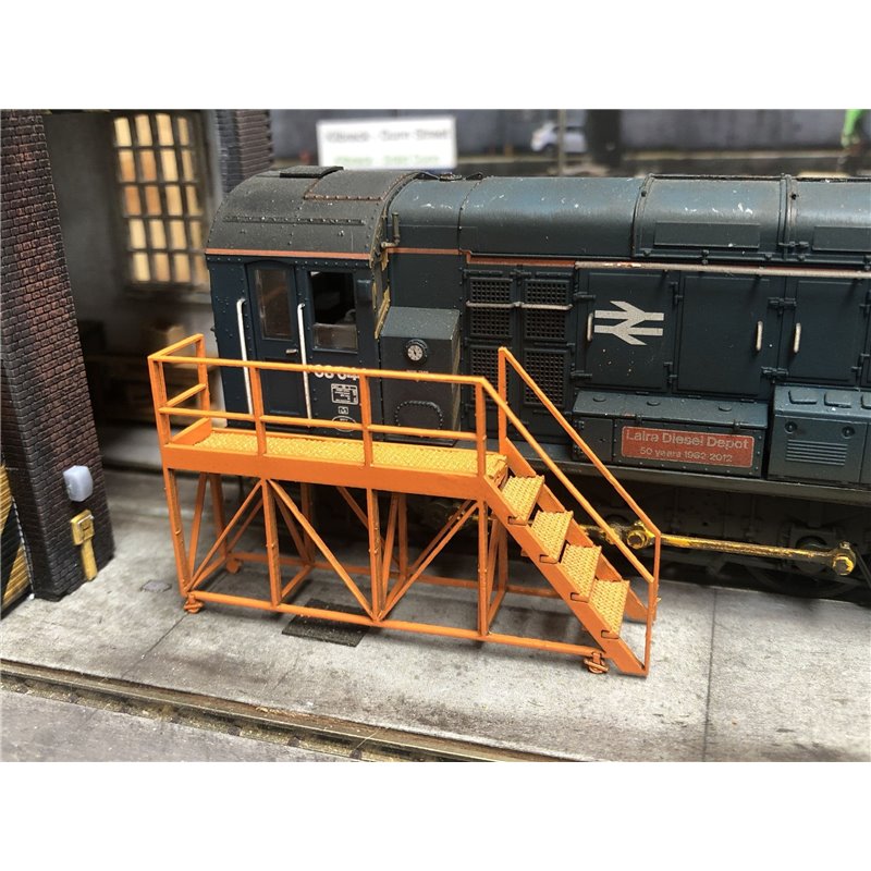 A laser cut kit to build a pair of Portable Locomotive Access Platforms. The kit builds one left and one right-hand platform, with lots of laser engraved detail for a very realistic finish, including tread-plate platform, steps & added wheel detail. Perfect for any traction maintenance depot but can also be used in bus & lorry depots, workshops, factories and warehouses too.