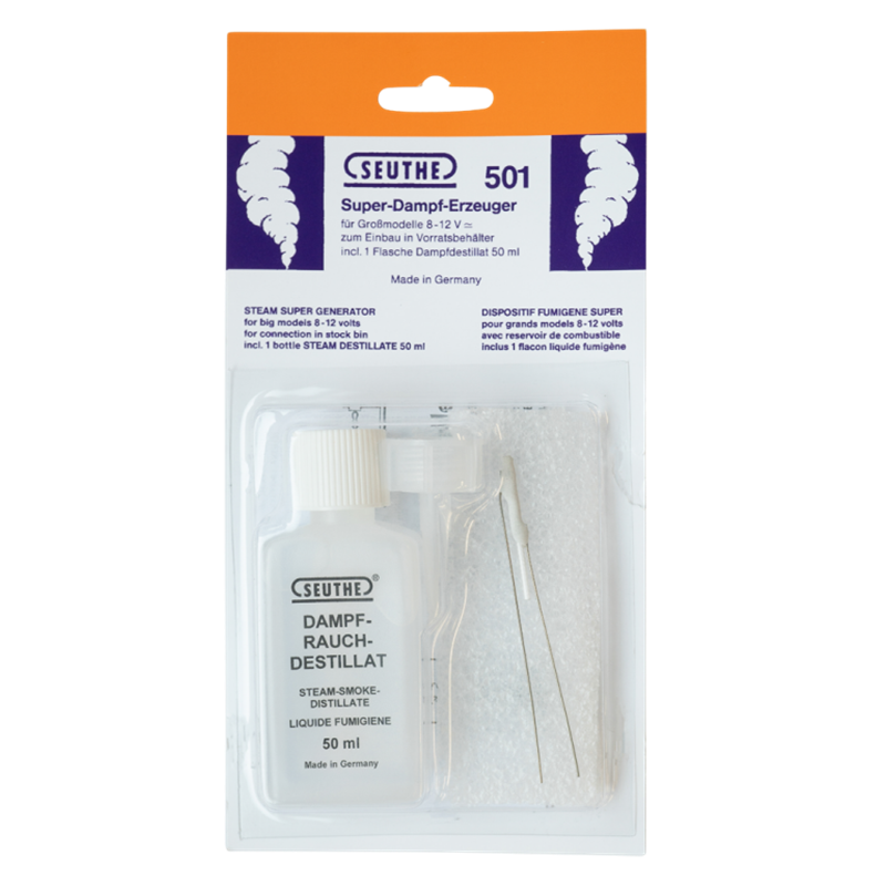 Super steam generator with a power consumption of approx. 700mA at 8-12V operating voltage for installation in storage tanks and with steam, smoke and distillate in a 50ml bottle.