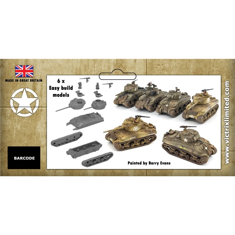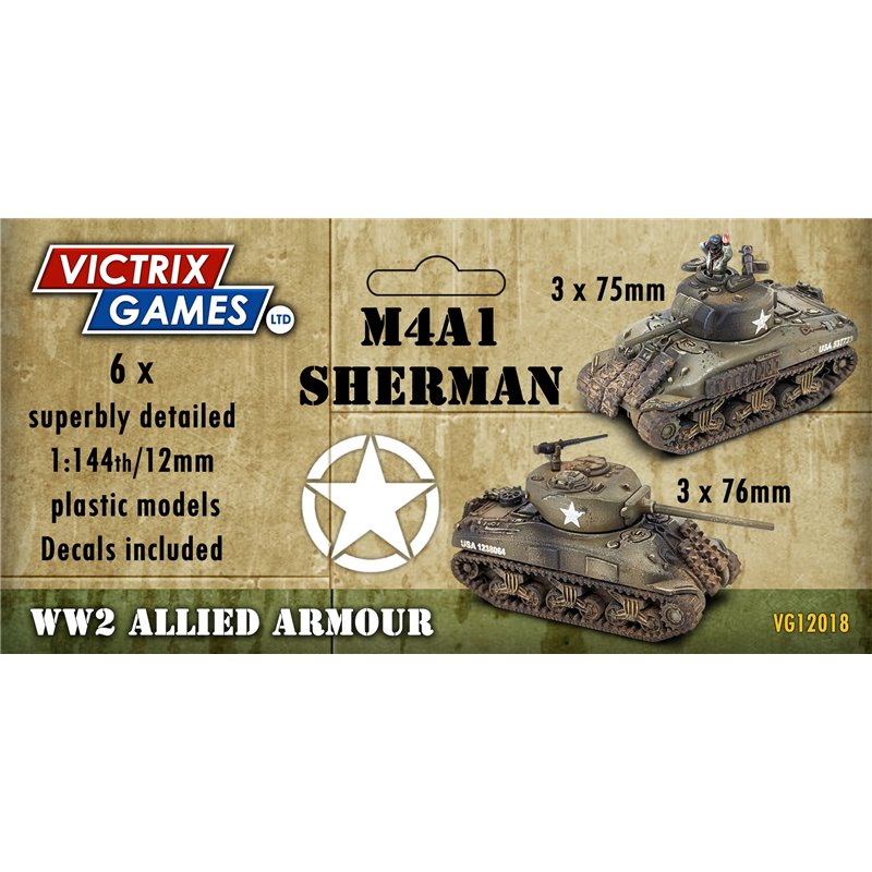 This set includes 6 superbly detailed 12mm/1:144 M4A1 Shermans (early and late versions) and a decal sheet.