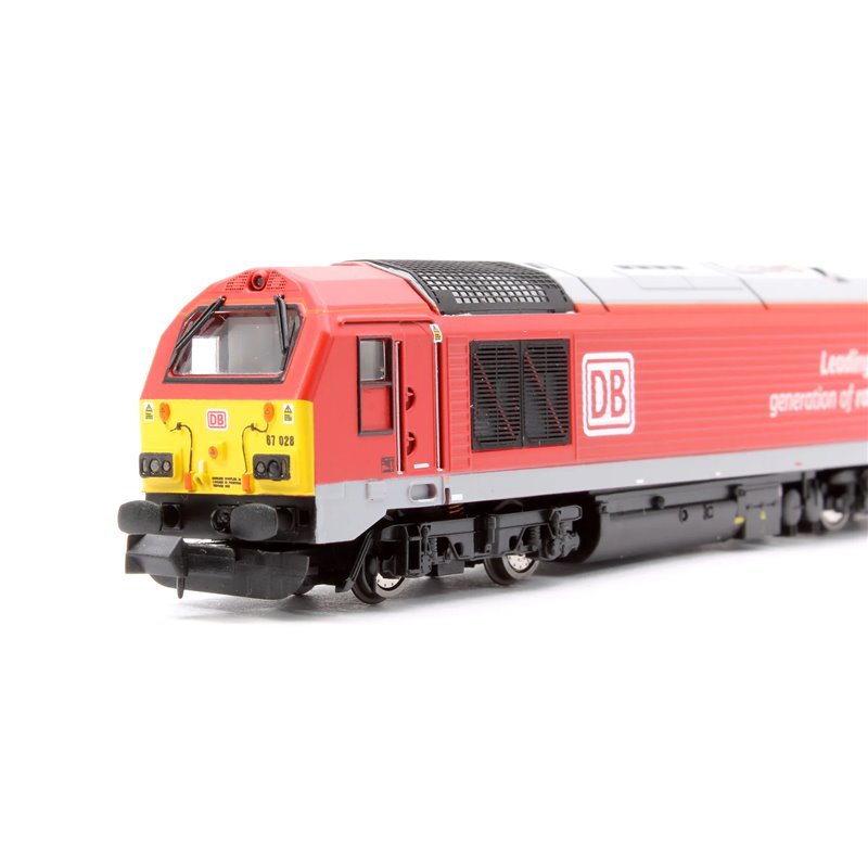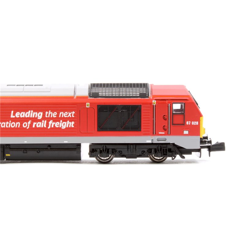 After the termination of the Royal Mail/EWS contract in 2003, the locomotives passed on to other operators including First Scotrail and Wrexham & Shropshire who then, after the operator’s closure, passed them on to Chiltern Railways. Two Class 67s were used for the prestigious Royal Trains, Queens Messenger and Royal Sovereign. Other special liveries included a red livery with white maple leaf in honour of the former EWS and DB Schenker UK Chairman Keith Heller.