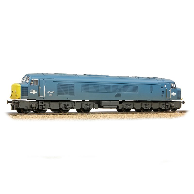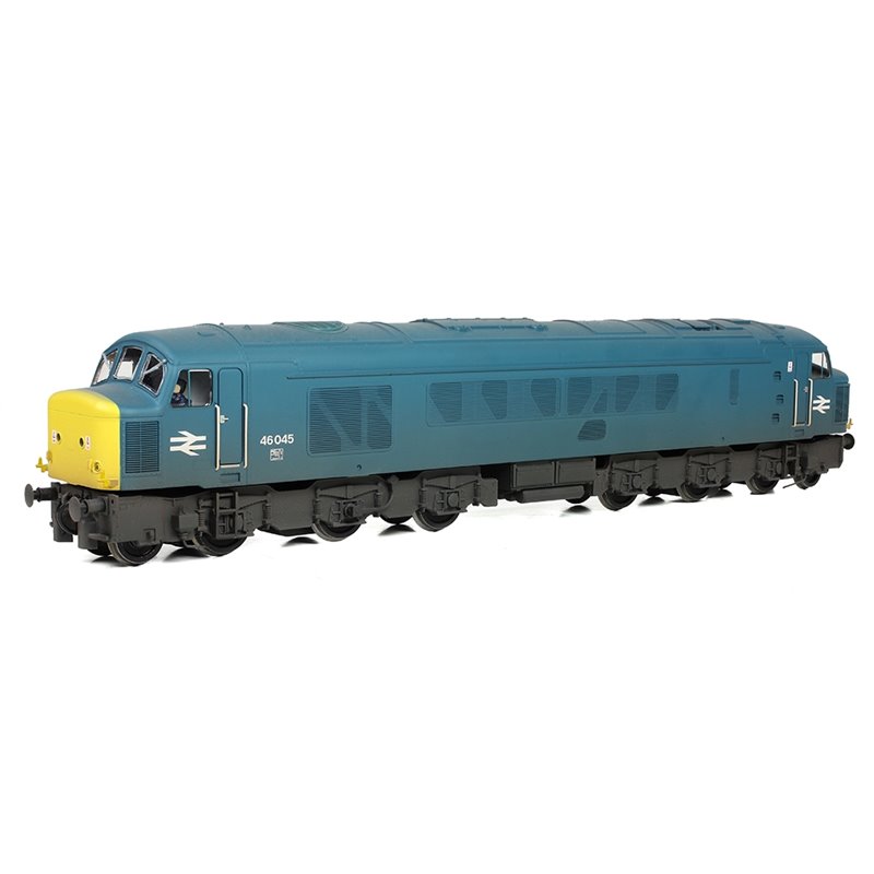 The Class 46 1Co-Co1 BR-Sulzer Type 4 locos were built from 1961–1963 at British Railways' Derby Works and were initially numbered D138–D193. With the arrival of TOPS they were renumbered to Class 46. Fifty-six locomotives were built. The first was withdrawn in 1977 and all of them were withdrawn by the end of 1984. Class 46s began their lives with twin headcode panels situated in the centre of the nose, and later built examples a single central headcode panel, to which all class members were progressively converted. The majority received plated over nose ends with sealed beam headlights in the 1970s. Liveries worn were standard BR lined green, 'austerity' green without the cream embellishments of the original livery, and BR Blue with full yellow ends.