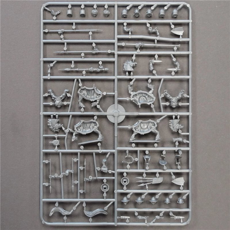 This hard plastic box set allows you to build up to 10 cavalry models equipped with sword, lance, javelin, and even jousting lances along with numerous accessories and five types of heads (80 in total!) This set is fully compatible with the previously released Halfling Militia set which will allow you to create mounted bowmen and more!