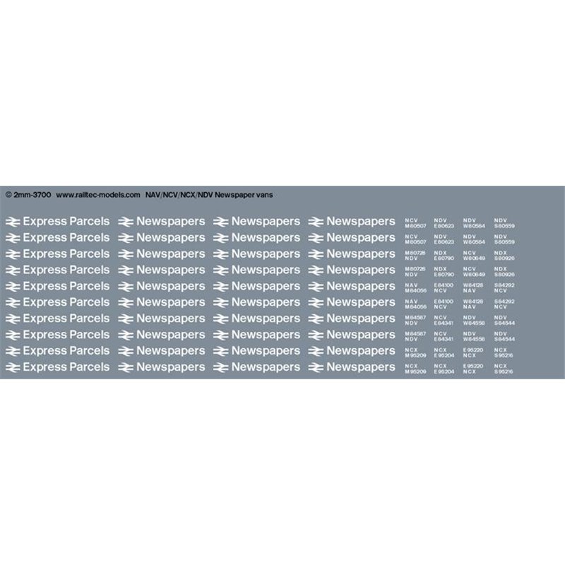 5 pairs of "Express Parcels" logos. 15 pairs of "Newspapers" logos. Realistic selection of running numbers for various regions with appropriate TOPS codes. Variation in number / TOPS code positioning for added realism.