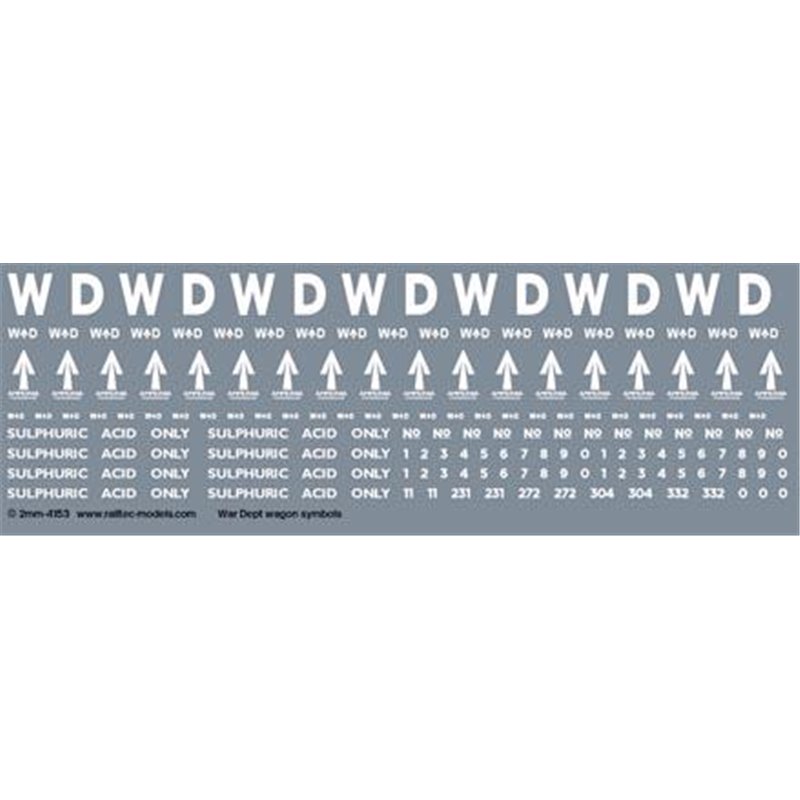 WD markings and symbols in 3 different sizes. Includes markings for ammonia and sulphuric acid vehicles. Includes selection of running numbers and individual numbers.
