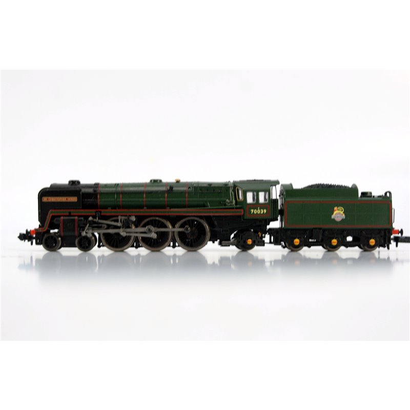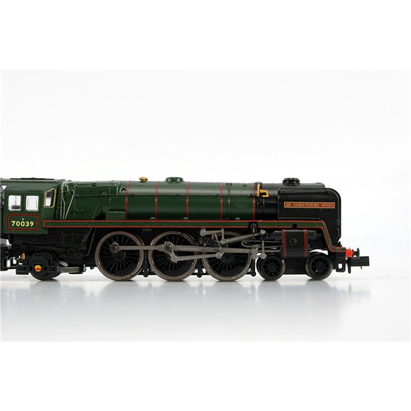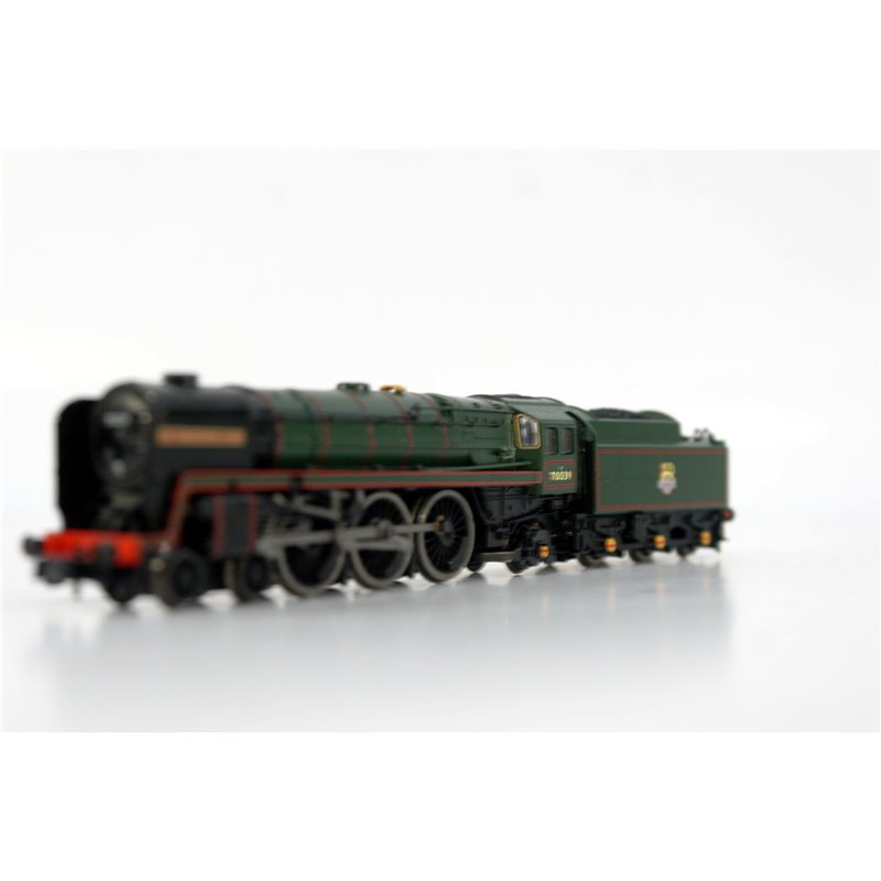 Dapol 2S-017-010 East Anglian train pack with Class 7MT 4-6-2 "Britannia" 70039 "Sir Christopher Wren" + 4 Gresley teak coaches. Used. N Gauge
