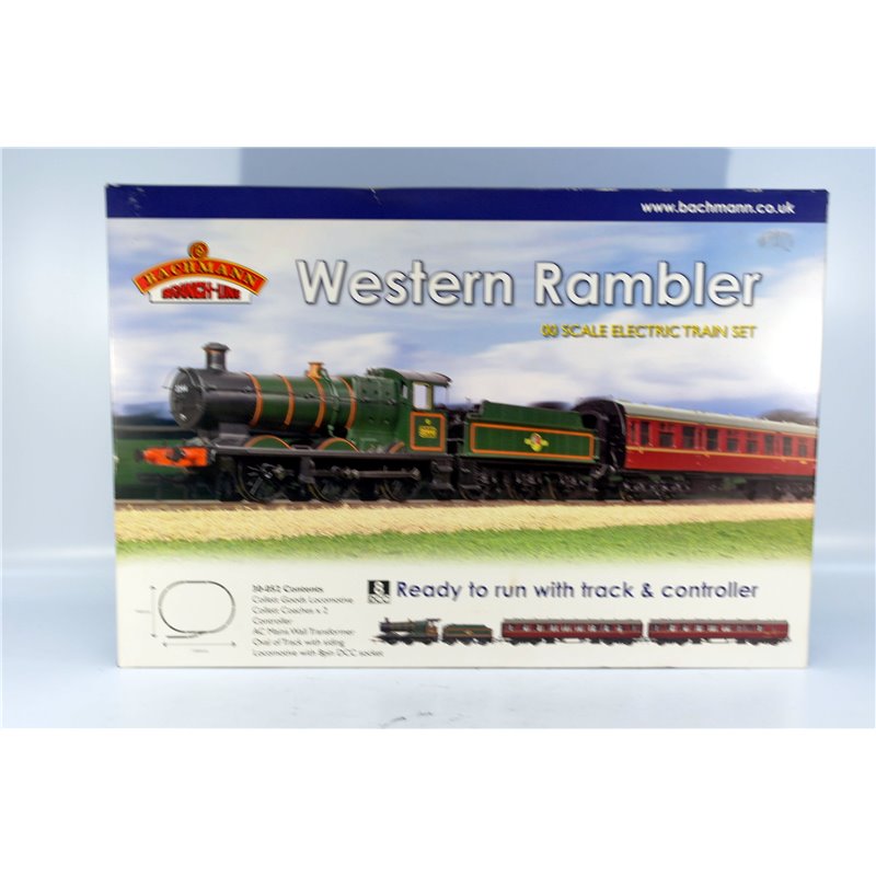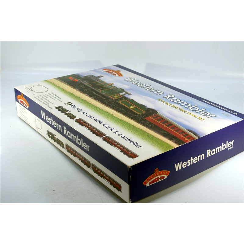 Bachmann 30-052 Western Rambler passenger train set: Collett locomotive + 2 coaches, Controller and Track. Used. OO Gauge