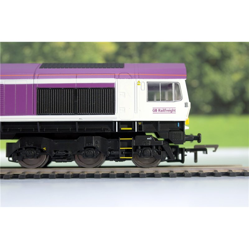 Replicating the prototypical Class 66 locomotive, our model sports a royal purple and grey livery for the Platinum Jubilee that was painted in 2022. A special Union Jack flag adorns the sides of the model. The accessory bag contains a pair of snow ploughs, four vac pipes and two moulded coupling links.