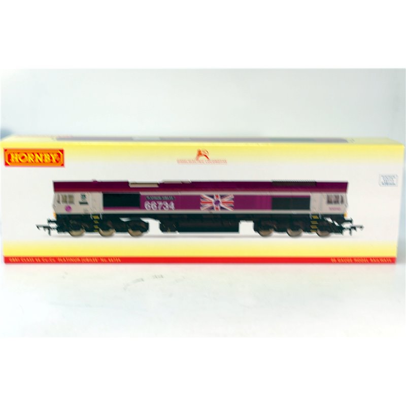 No. 66734 ‘Platinum Jubilee’ was in service in Europe as No. PB04 and imported from Germany for GB Railfreight use in early 2022. It’s GBRf’s 100th Class 66. This locomotive replaced the previous 66734 which hit a landslide and derailed down an embankment at Loch Trieg in June 2012.