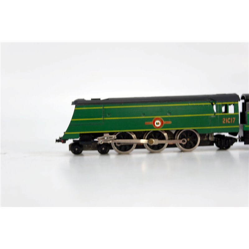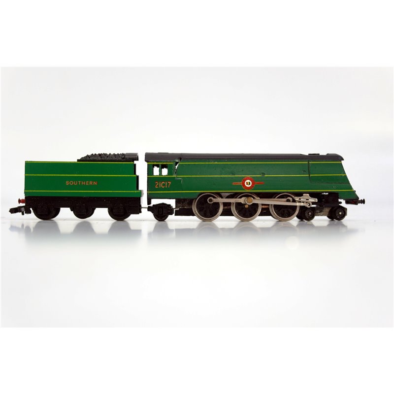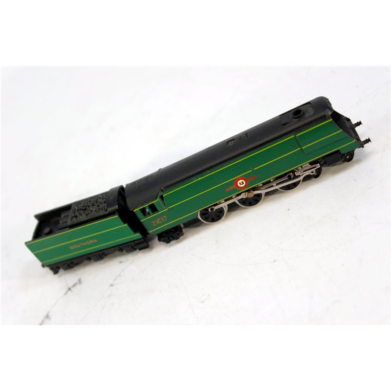 Graham Farish 1503 Merchant Navy Class 4-6-2 21C17 'Belgian Marine' in SR green. Used. N Gauge