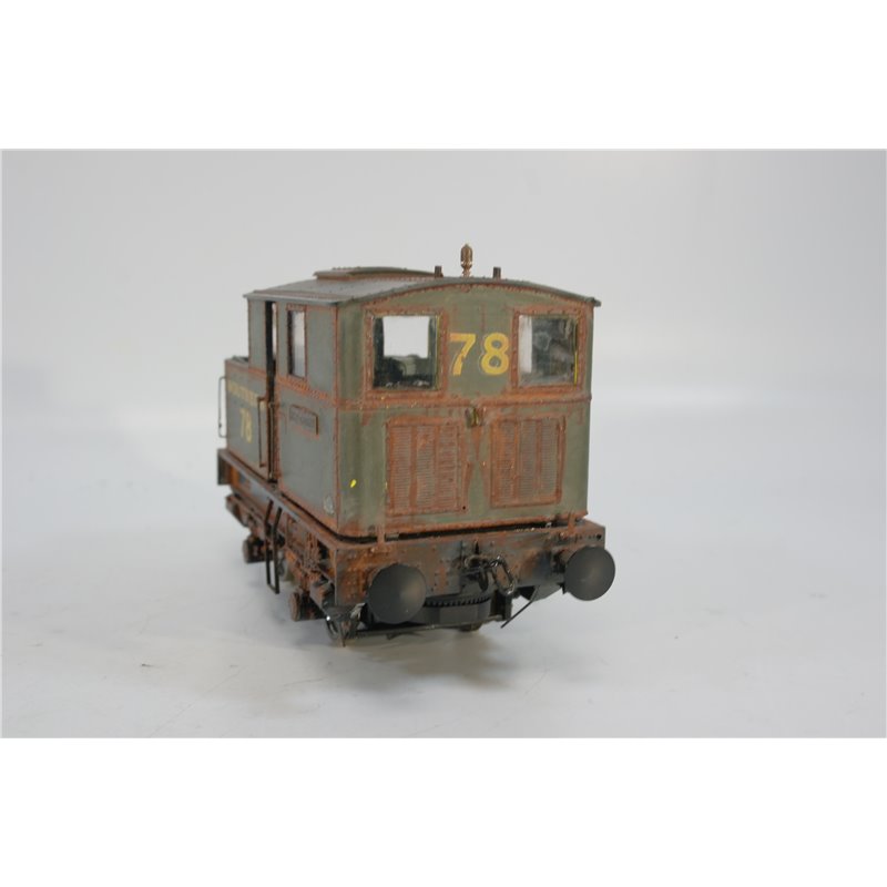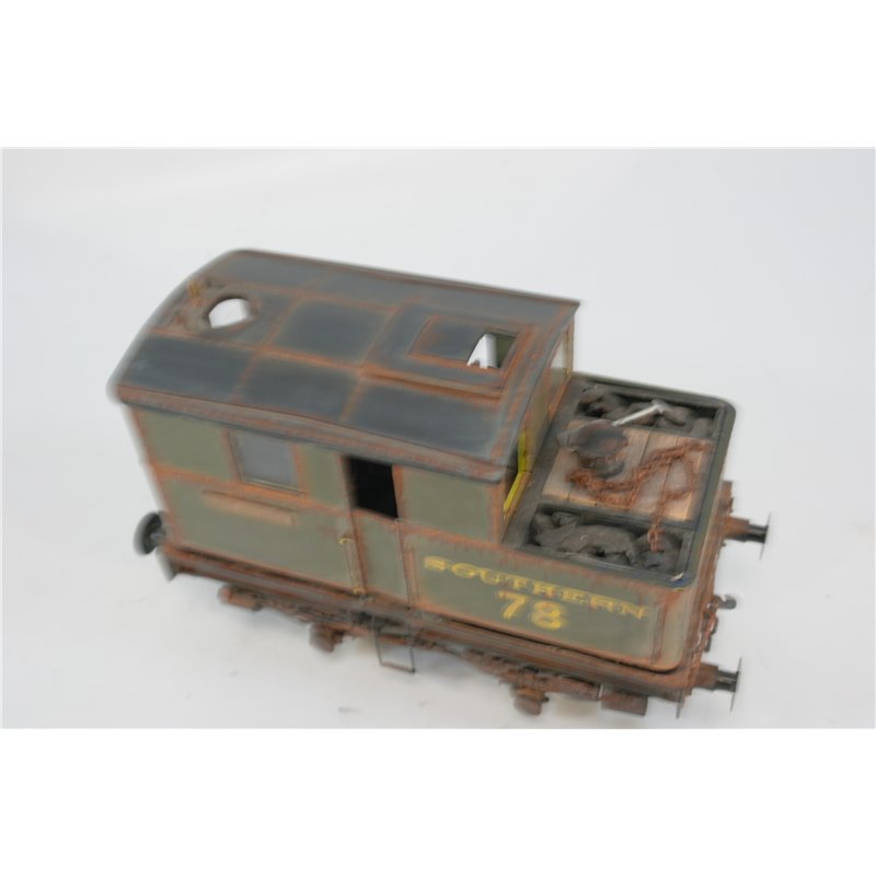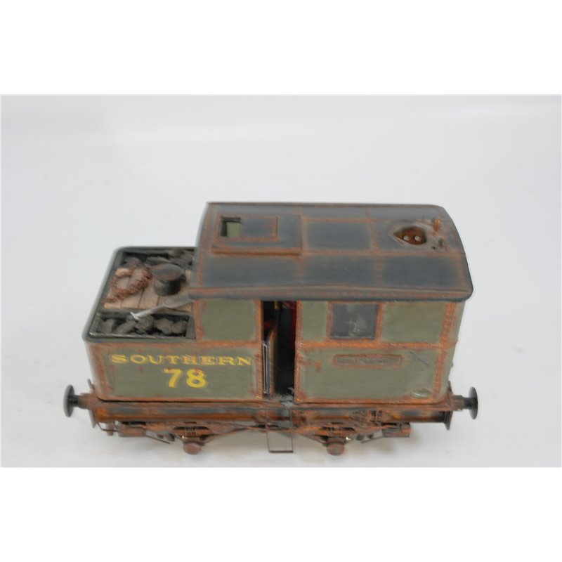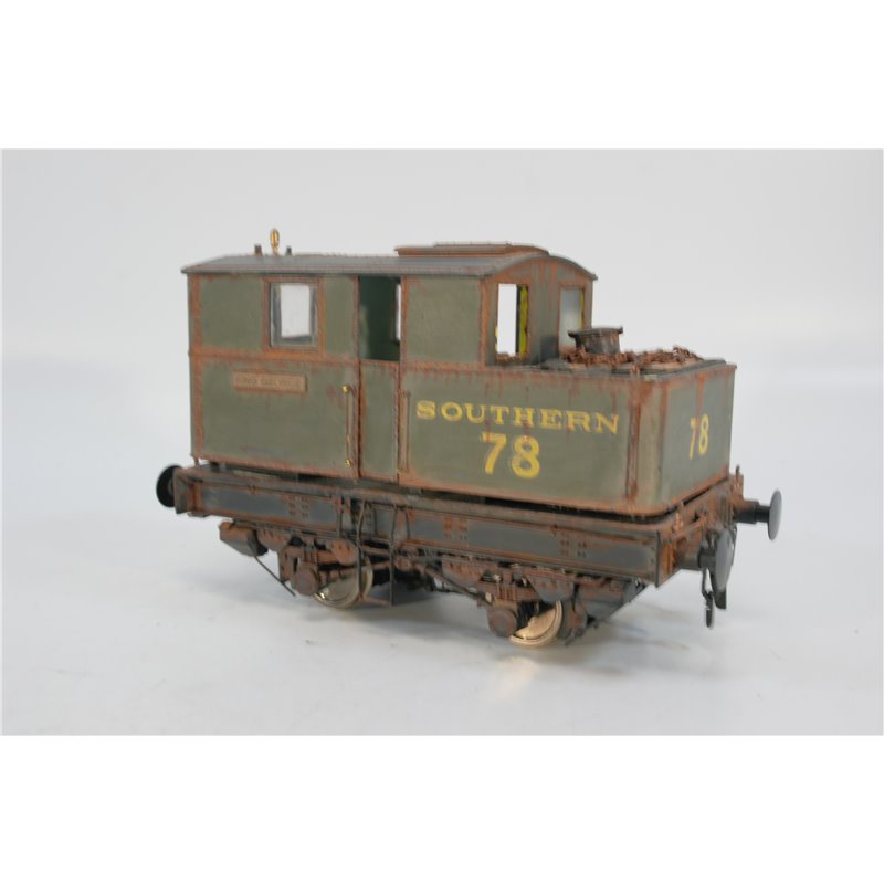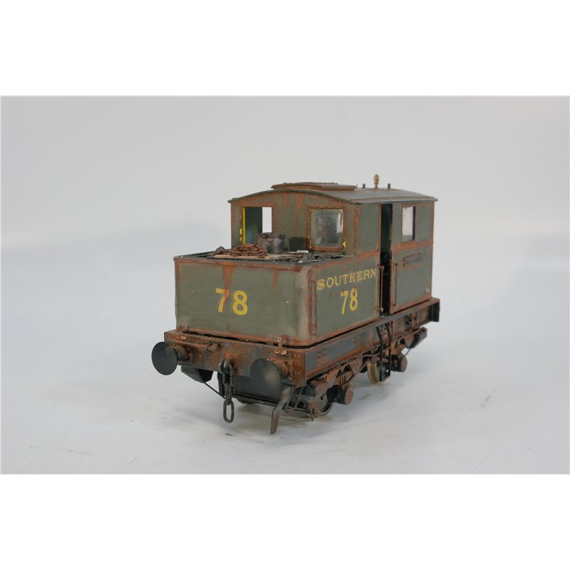 This engine has been heavily modified, including a complete change of livery, into a Souhern Railways No.78 Shunter in Green " King George", It is heavily weathered to a very high standard. The tabs securing the body to the chassis are all present, but the body is a bit lose and will need attention. One of the windows has fallen out, but is in the box. This is a unique engine