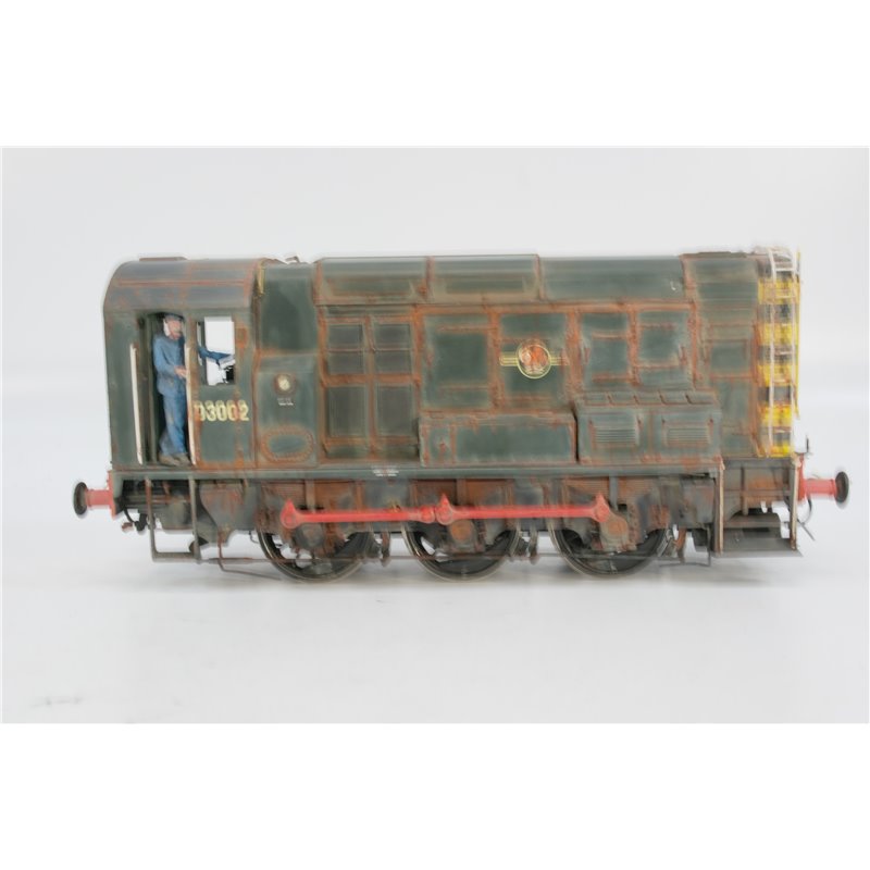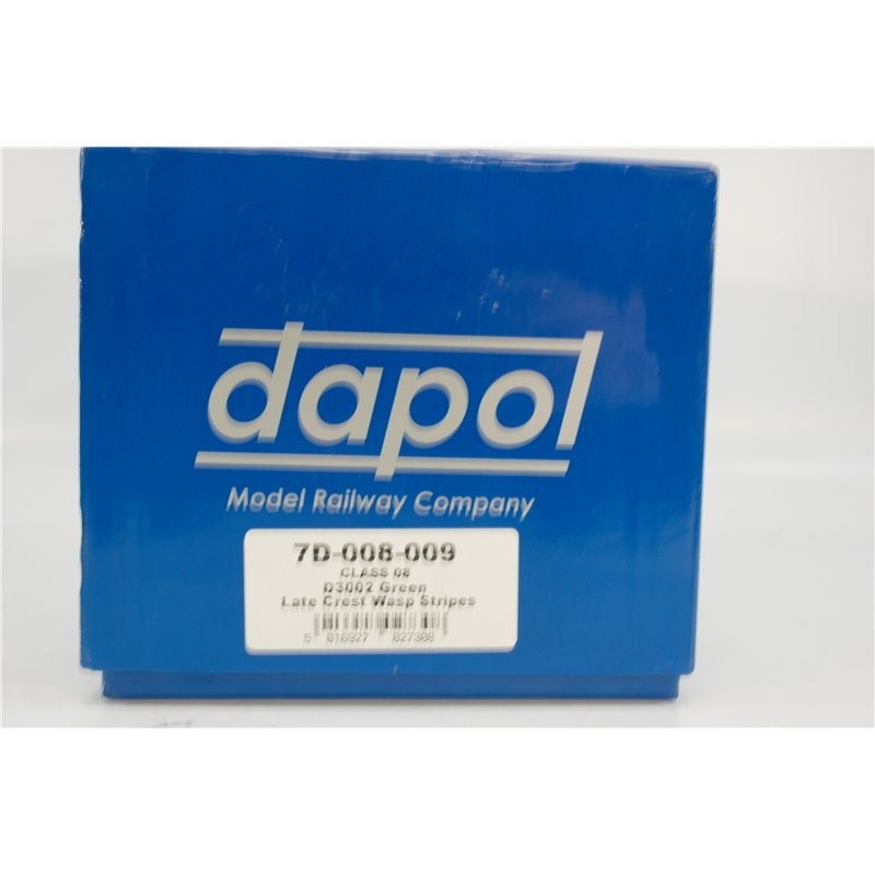 >Bargains>Used locos / train sets>Dapol 7D-008-009 Class 08 shunter D3002 in BR green with late crest and wasp stripes DCC + Sound Fitted . Weathered. Used. OO