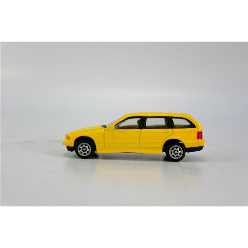 A collection of 18 Cars, made up of six Yellow BMW 325i Touring, six Blue Volvo 850s and six Saab 9-5.