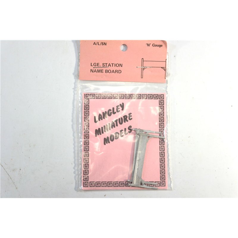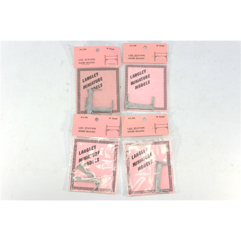 4x Two Langley White Metal Station Name Boards Large in N Gauge. New Old Stock, complete, Unopened.
