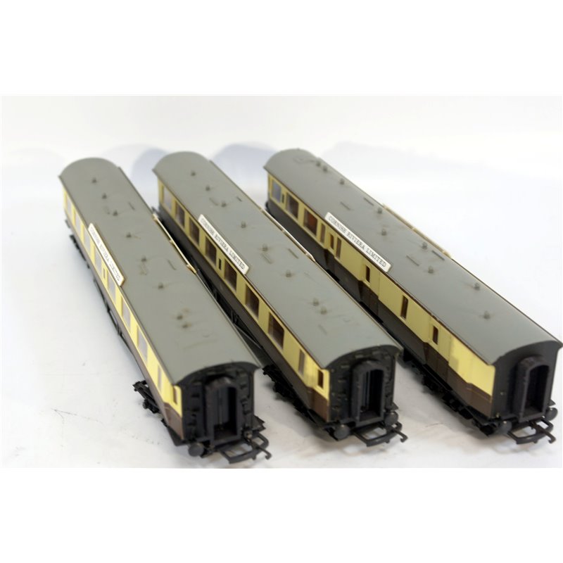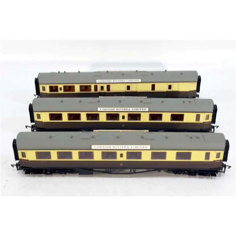 These coaches are in excellent condition with the 'Cornish Riviera Limited ' Logo. There is little evidence of them being used.