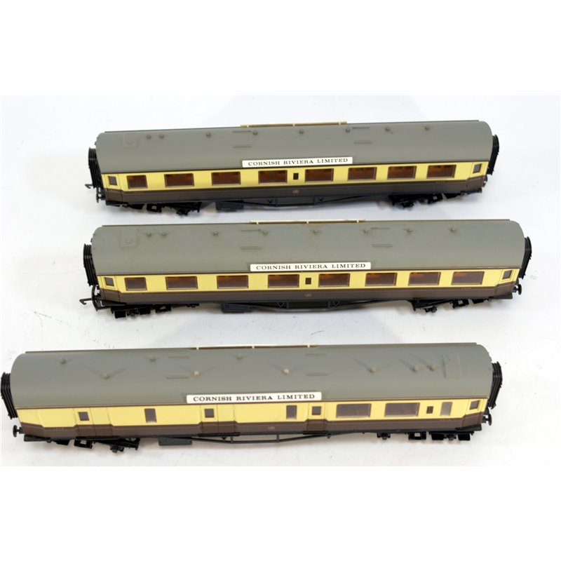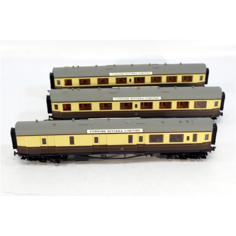 These coaches are in excellent condition with the 'Cornish Riviera Limited ' Logo. There is little evidence of them being used.