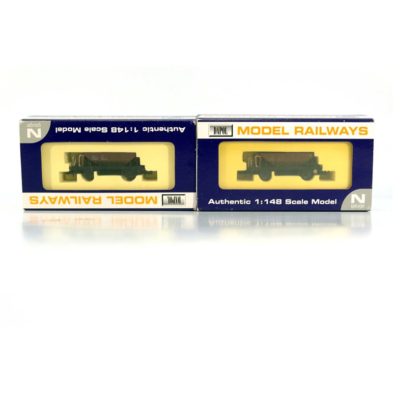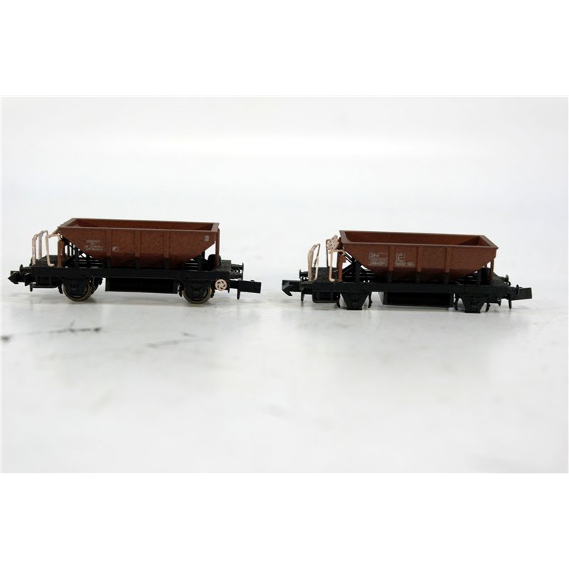 Dapol NB033f and NB033h Dogfish wagon 993401 and 993457 in rusty livery. Used. N Gauge