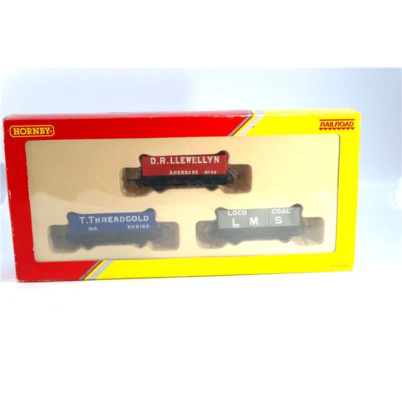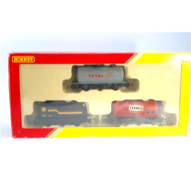 A Set of Two Hornby Wagon Sets comprising of R6366 Fuel Tanker Pack and R6482 LWB Open Wagon Set