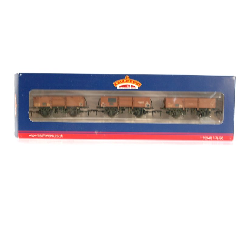 UP-T7877Bachmann Branchline 38-340 Pack of 3 13 Ton high sided steel open wagons in BR bauxite - weathered. Used. OO Gauge