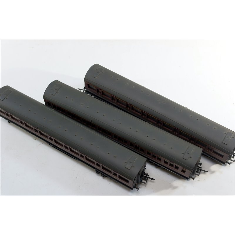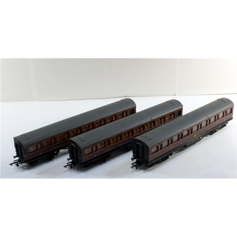 A Set of three Marron LMS Coaches from Graham Farrish. Used. OO Gauge