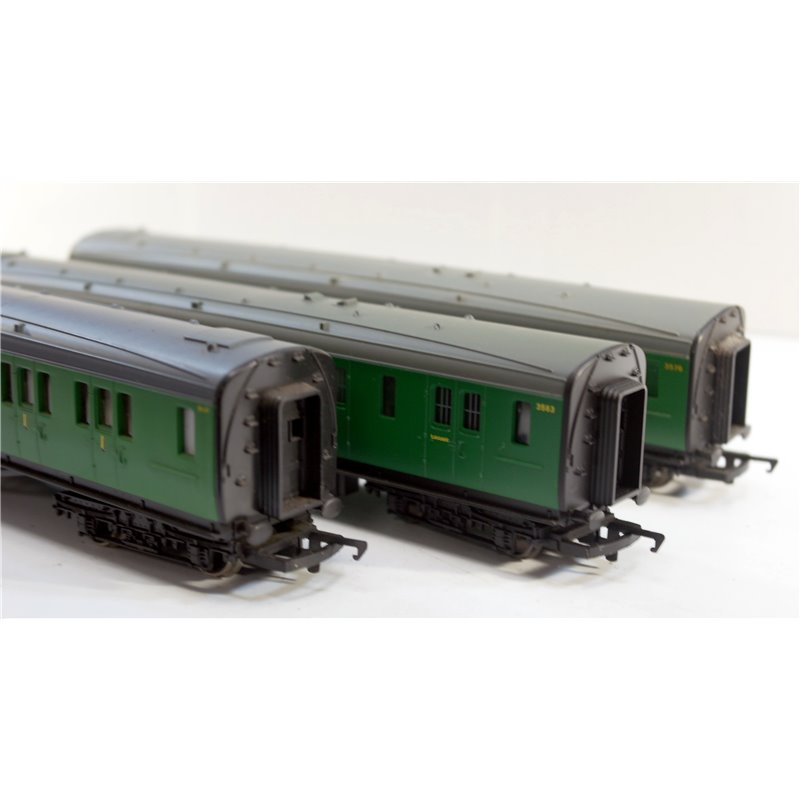 A set of three Green Southern coaches from Hornby