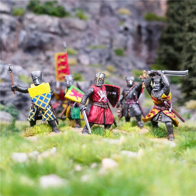 This set has 32 Foot Knights representing knights of the Late 12th to 13th Centuries. They can be used in the Crusades, The First and Second Barons War, The Spanish Reconquista and as Germans, French, Poles, Italians who were all waging war on each other throughout this turbulent time in history.
