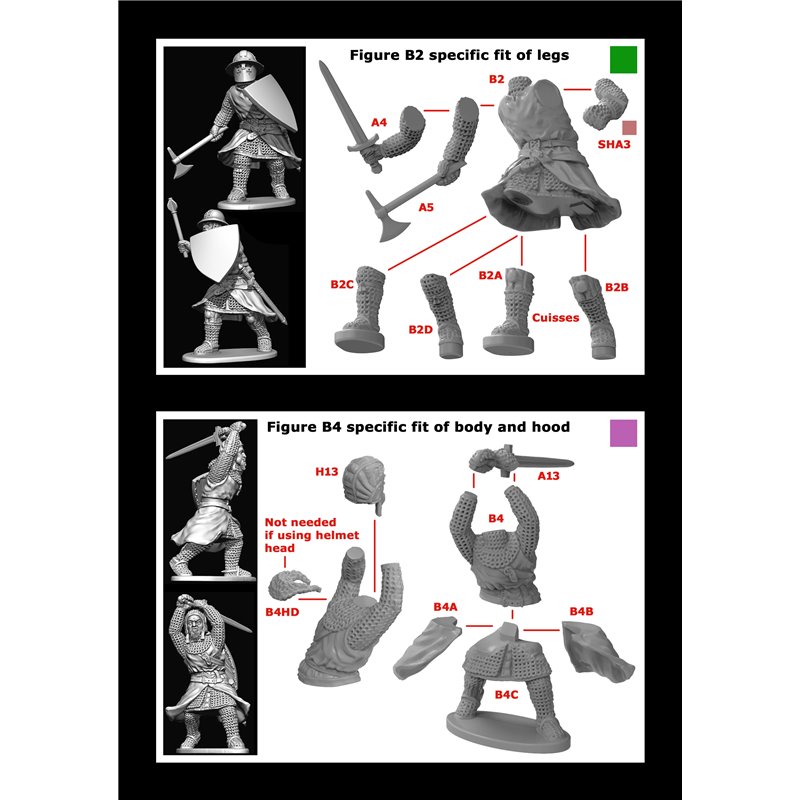 Earlier styles can be used together with later styles as equipment would last generations as it was passed from Father to Son. These can all be interchangeable with our mounted Knights set.