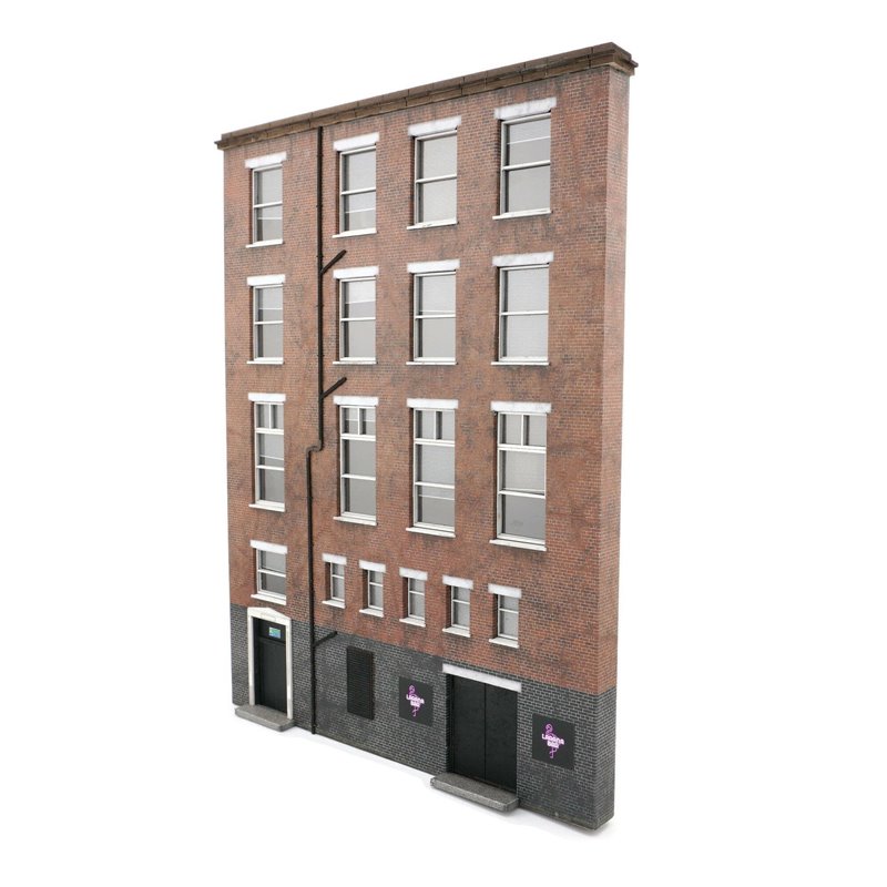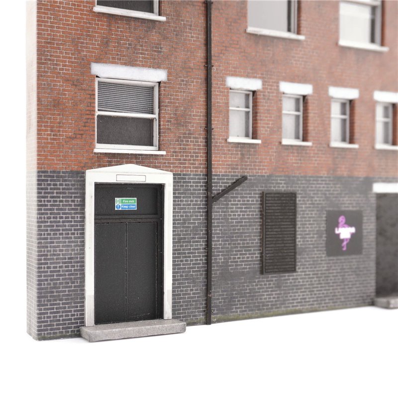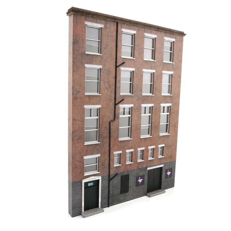 A detailed yet easy to assemble & versatile OO gauge / 1:76 scale low-relief nightclub & offices building. Based on a real life prototype up in Liverpool, the building features weathered, brown & blue brick construction with sash windows and detailed entrance doors.